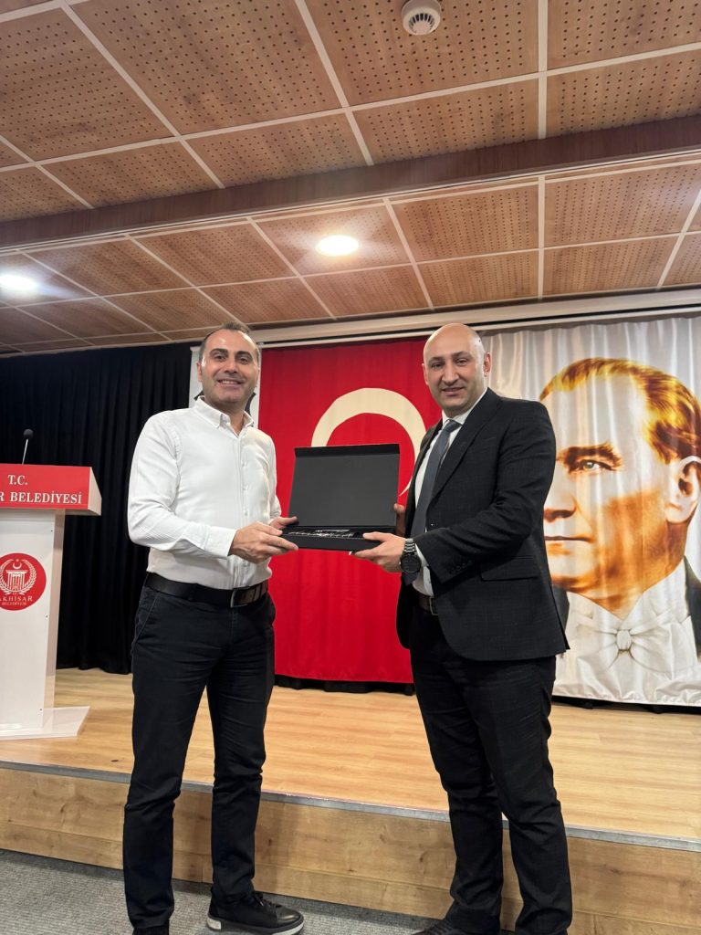 Akhisar Belediye Başkan Yardımcısı Ekrem Kayserili’ye kartını Dernek Onur Üyesi Emekli Vali Necmettin Yalınalp,